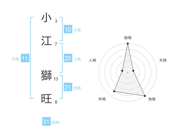 小江 獅旺さんの総格は31画の5点!