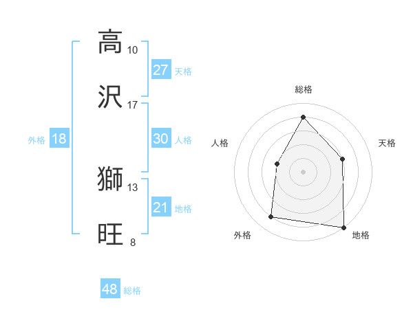 高沢 獅旺さんを姓名の画数から五運を鑑定