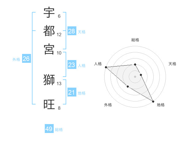 宇都宮 獅旺さんの総格は49画の2点