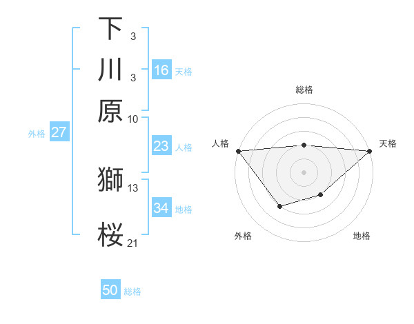下川原 獅桜さんを姓名の画数から五運を鑑定