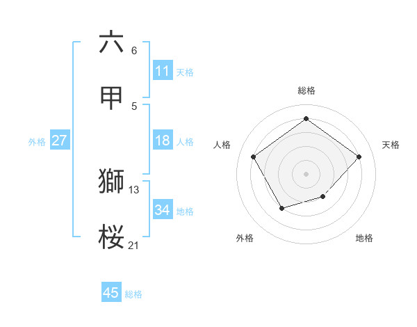 六甲 獅桜さんの総格は45画の4点!