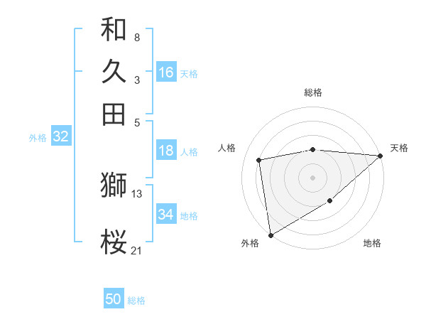 和久田 獅桜さんを姓名の画数から五運を鑑定