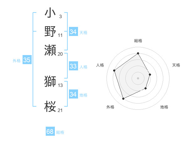 小野瀬 獅桜さんを姓名の画数から五運を鑑定