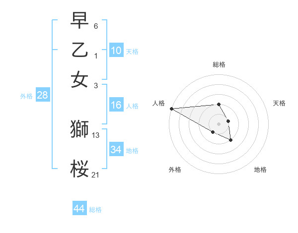 早乙女 獅桜さんの総格は44画の2点!