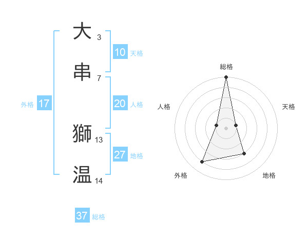 大串 獅温さんの総格は37画の5点!