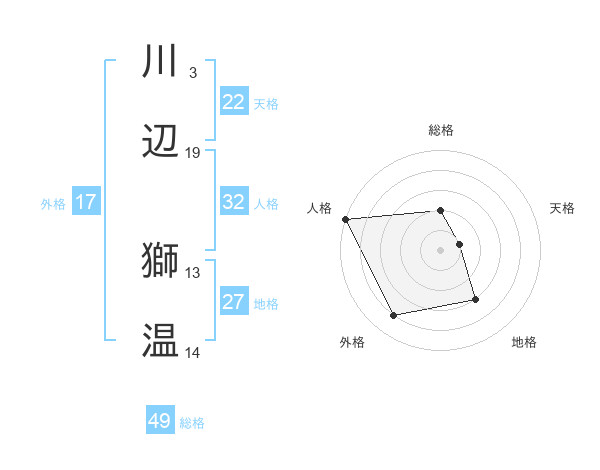 川辺 獅温さんの総格は49画の2点