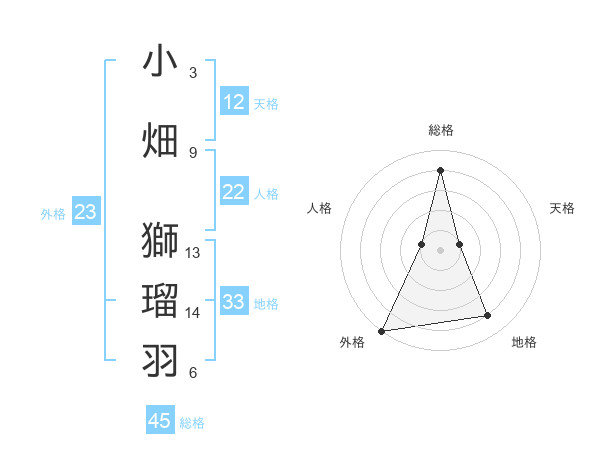 小畑 獅瑠羽さんの外格は23画の5点!