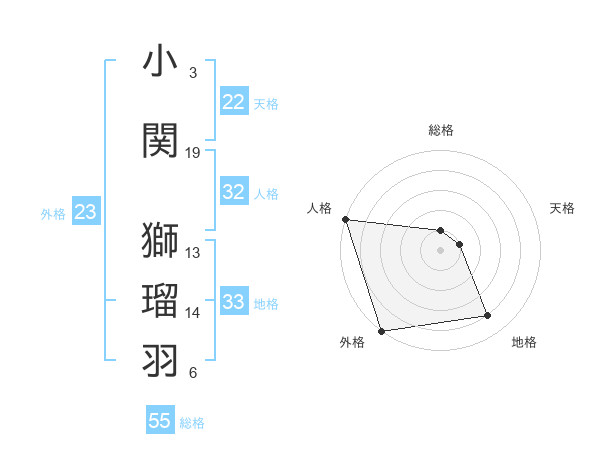 小関 獅瑠羽さんを姓名の画数から五運を鑑定