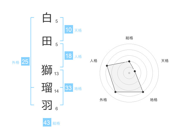 白田 獅瑠羽さんを姓名の画数から五運を鑑定