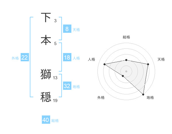 下本 獅穏さんを姓名の画数から五運を鑑定