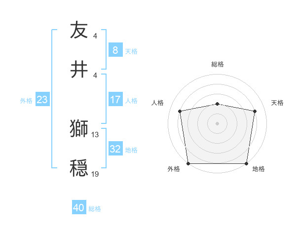友井 獅穏さんを姓名の画数から五運を鑑定