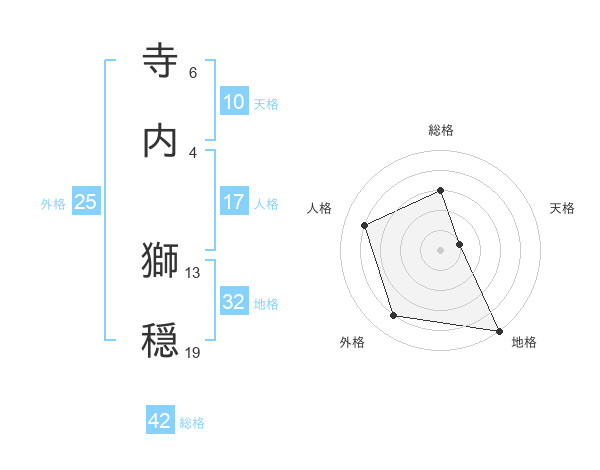 寺内 獅穏さんを姓名の画数から五運を鑑定