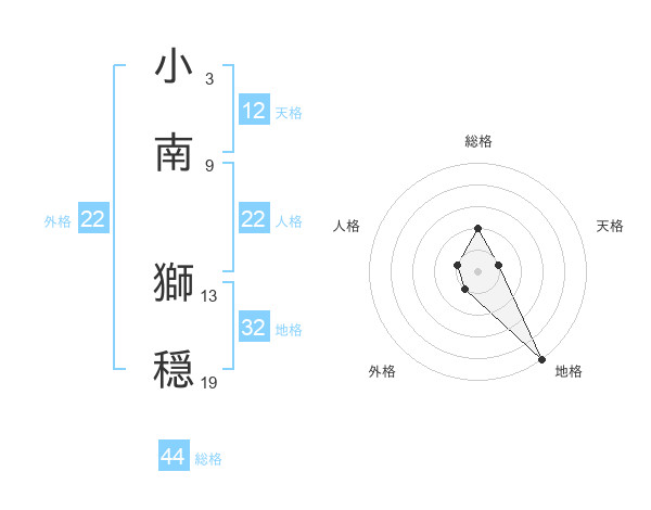 小南 獅穏さんの総格は44画の2点!