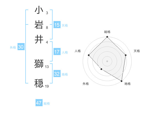 小岩井 獅穏さんを姓名の画数から五運を鑑定