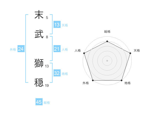 末武 獅穏さんを姓名の画数から五運を鑑定