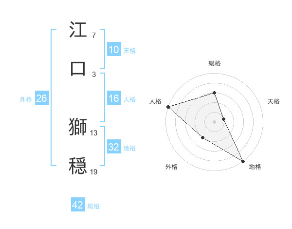 江口 獅穏さんを姓名の画数から五運を鑑定