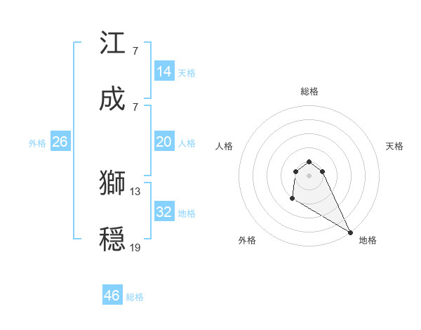 江成 獅穏さんを姓名の画数から五運を鑑定
