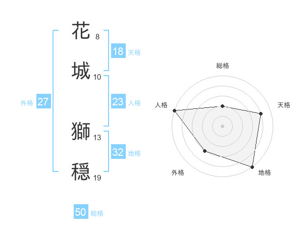 花城 獅穏さんの総格は50画の2点!
