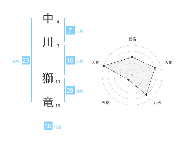 中川 獅竜さんを姓名の画数から五運を鑑定