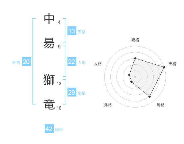 中昜 獅竜さんを姓名の画数から五運を鑑定