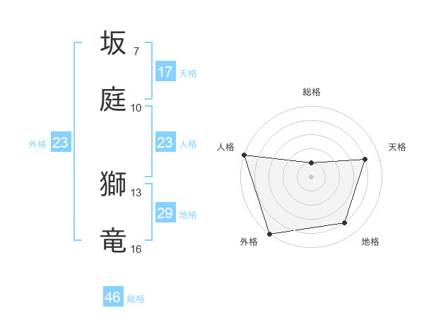 坂庭 獅竜さんの外格は23画の5点!