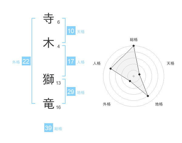 寺木 獅竜さんを姓名の画数から五運を鑑定