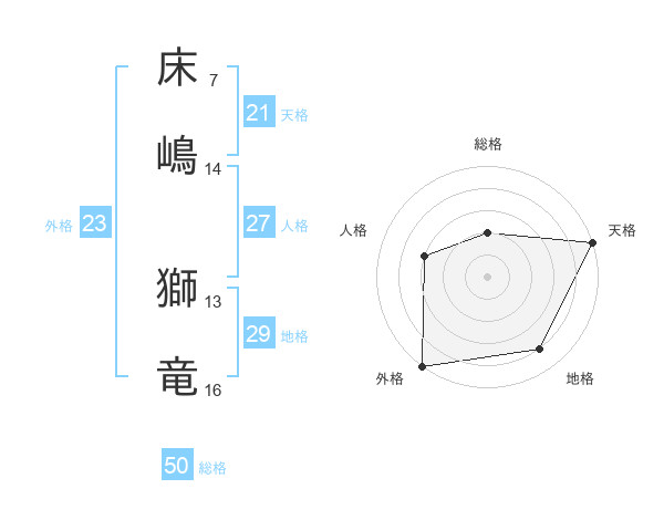 床嶋 獅竜さんの総格は50画の2点!