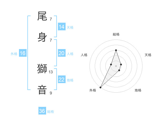 尾身 獅音さんを姓名の画数から五運を鑑定