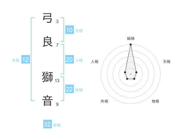 弓良 獅音さんの総格は32画の5点!