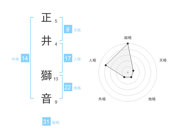 正井 獅音さんの総格は31画の5点!