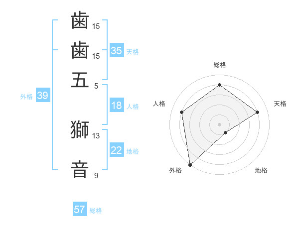 歯歯五 獅音さんを姓名の画数から五運を鑑定