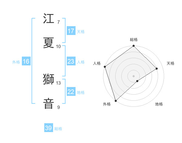 江夏 獅音さんを姓名の画数から五運を鑑定