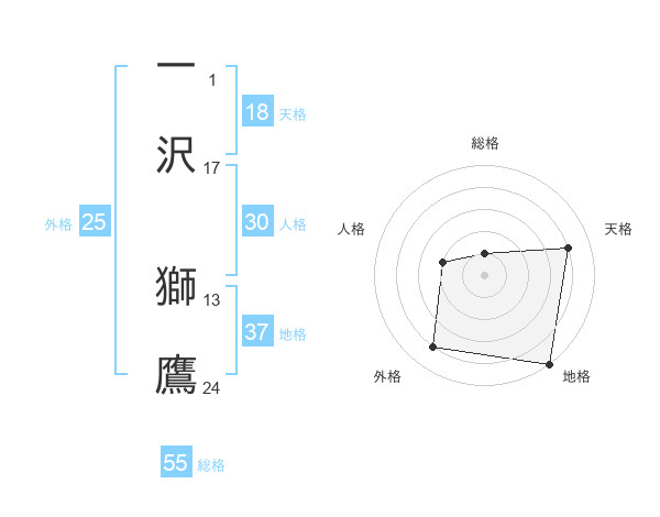 一沢 獅鷹さんを姓名の画数から五運を鑑定