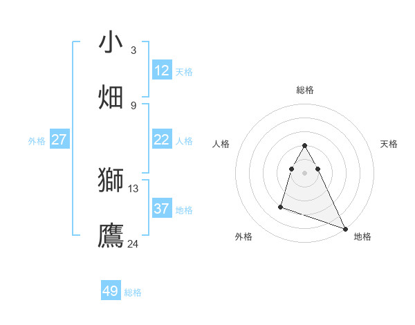 小畑 獅鷹さんを姓名の画数から五運を鑑定