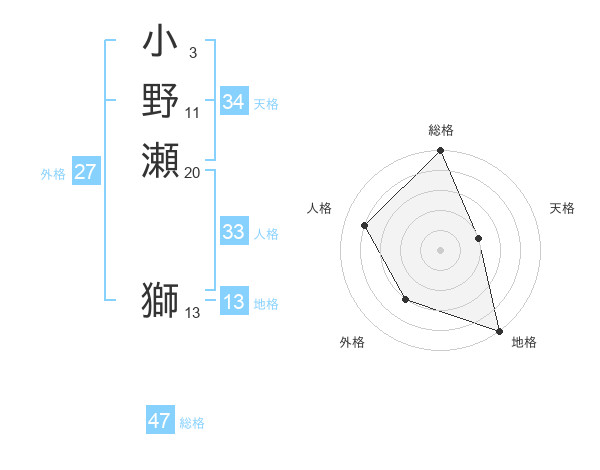 小野瀬 獅さんの総格は47画の5点!