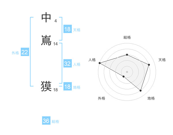 中嶌 獏さんの天格は18画の4点!