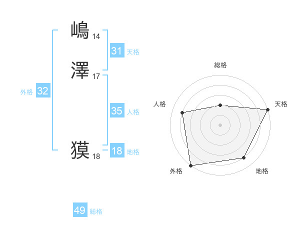 嶋澤 獏さんを姓名の画数から五運を鑑定