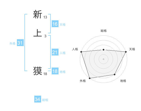 新上 獏さんの外格は31画の5点!