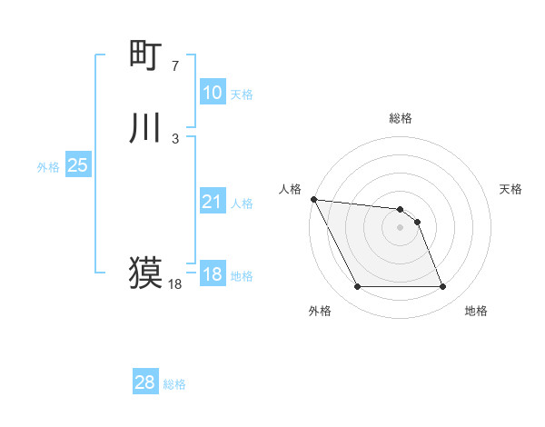 町川 獏さんの総格は28画の1点!