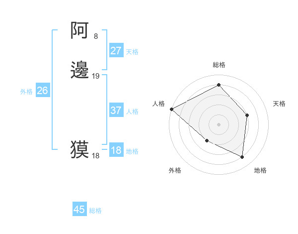 阿邊 獏さんを姓名の画数から五運を鑑定