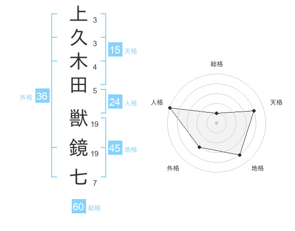 上久木田 獣鏡七さんの総格は60画の1点