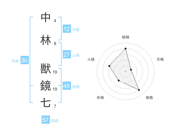 中林 獣鏡七さんを姓名の画数から五運を鑑定