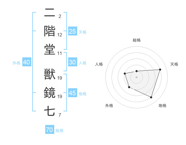 二階堂 獣鏡七さんの天格は25画の4点!