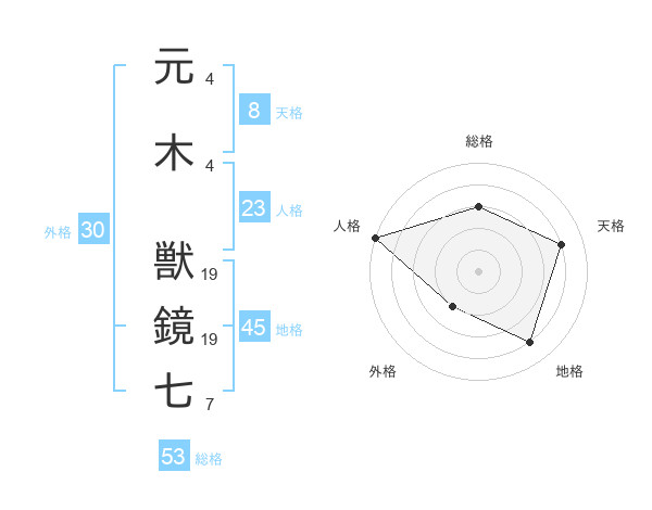 元木 獣鏡七さんの総格は53画の3点!