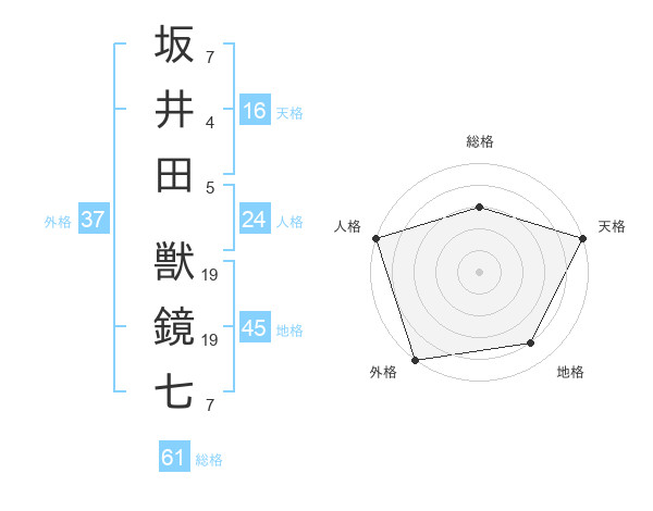 坂井田 獣鏡七さんの外格は37画の5点!