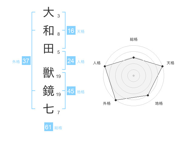 大和田 獣鏡七さんの名前の鑑定結果は!