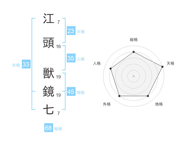 江頭 獣鏡七さんの名前の鑑定結果は!