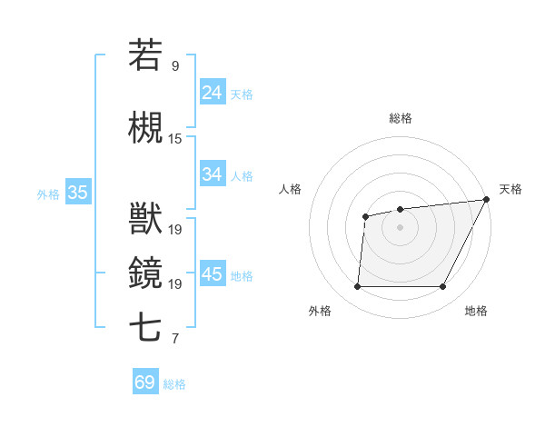 若槻 獣鏡七さんの総格は69画の1点
