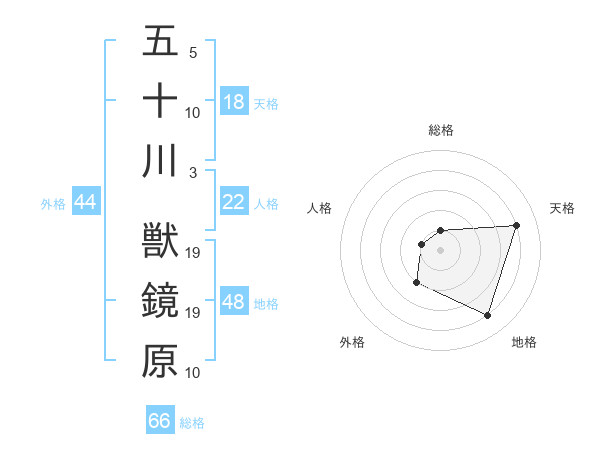 五十川 獣鏡原さんを姓名の画数から五運を鑑定