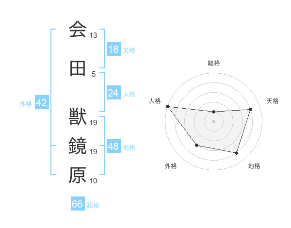 会田 獣鏡原さんの総格は66画の1点!